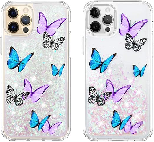 Amazon Com Ucolor Iridescent Butterfly Glitter Case Compatible With Iphone 12 Pro Max 6 7 Inches Waterfall Liquid Sparkling Quicksand Clear Protective Case For Iphone 12 Pro Max 6 7 Butterflies